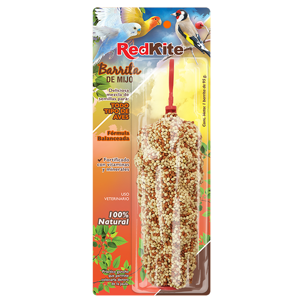 Redkite barrita de mezcla de semillas de mijo blanco y rojo para aves pequeñases ideal para para aves pequeñas que se alimentan principalmente de semillas (jilgueros, canarios, diamantes, agapornis, cardenales, perico australiano, isabelas) 100% natural Fortificado con vitaminas y minerales.