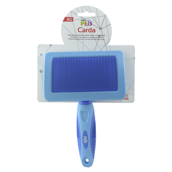 La carda de Fancy Pets es la herramienta ideal para cepillar los mantos medios y largos de los perros, sus pequeñas puas ingeniosamente distribuidas fácilita la tarea y permite eliminar cualquier objeto extraño y pelo muerto del manto. El cepillado estimula la producción de aceites naturales protectores en la piel de su perro.