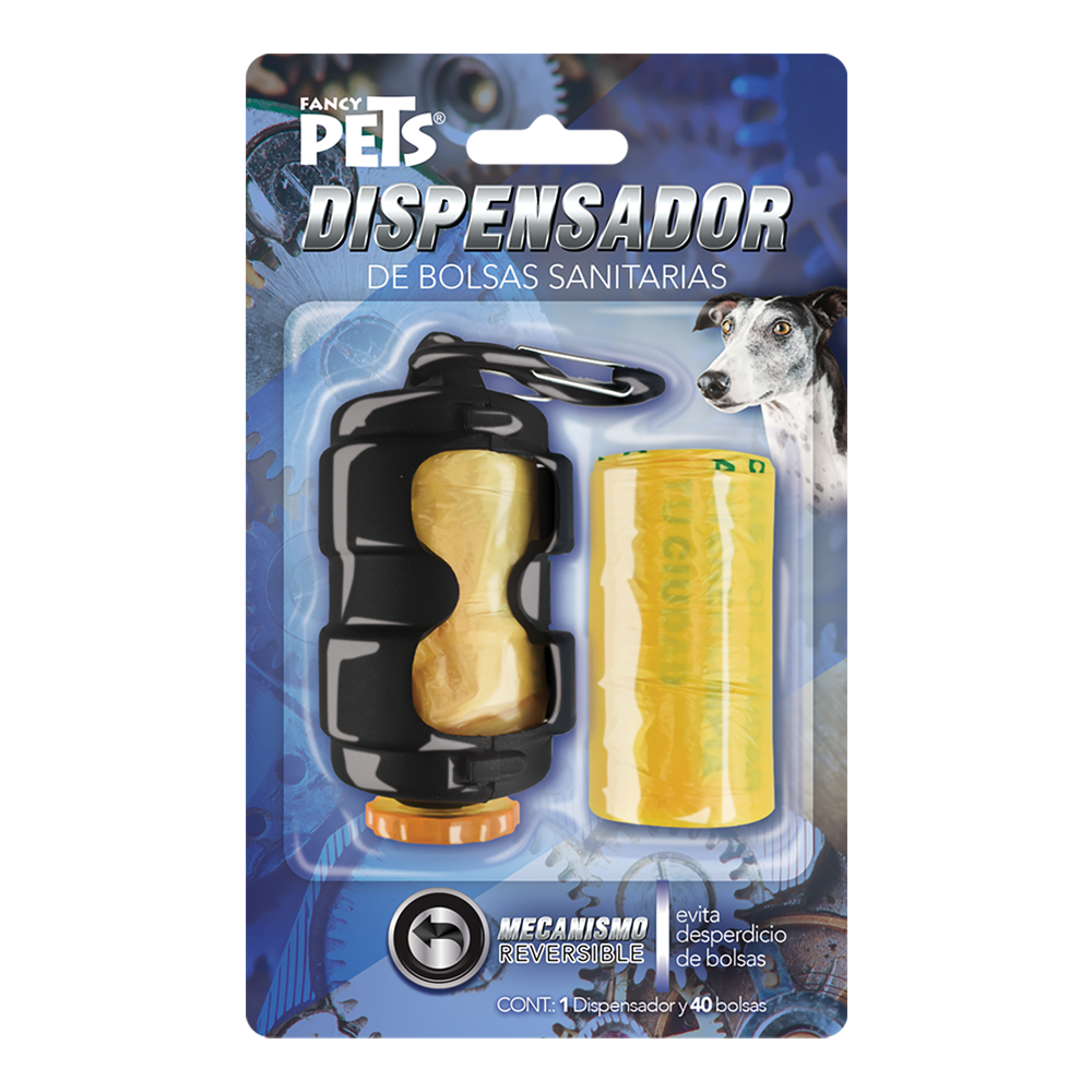 Dispensador retráctil de bolsas sanitarias con 40 bolsas. Dispensador retráctil negro tipo llavero para bolsas sanitarias con orificio para extraer una bolsa a la vez. Incluye 40 bolsas desechables. Beneficios: Evita desperdicio de bolsas por sus sistema retráctil Favorece la higiene y es fácil de utilizar.
