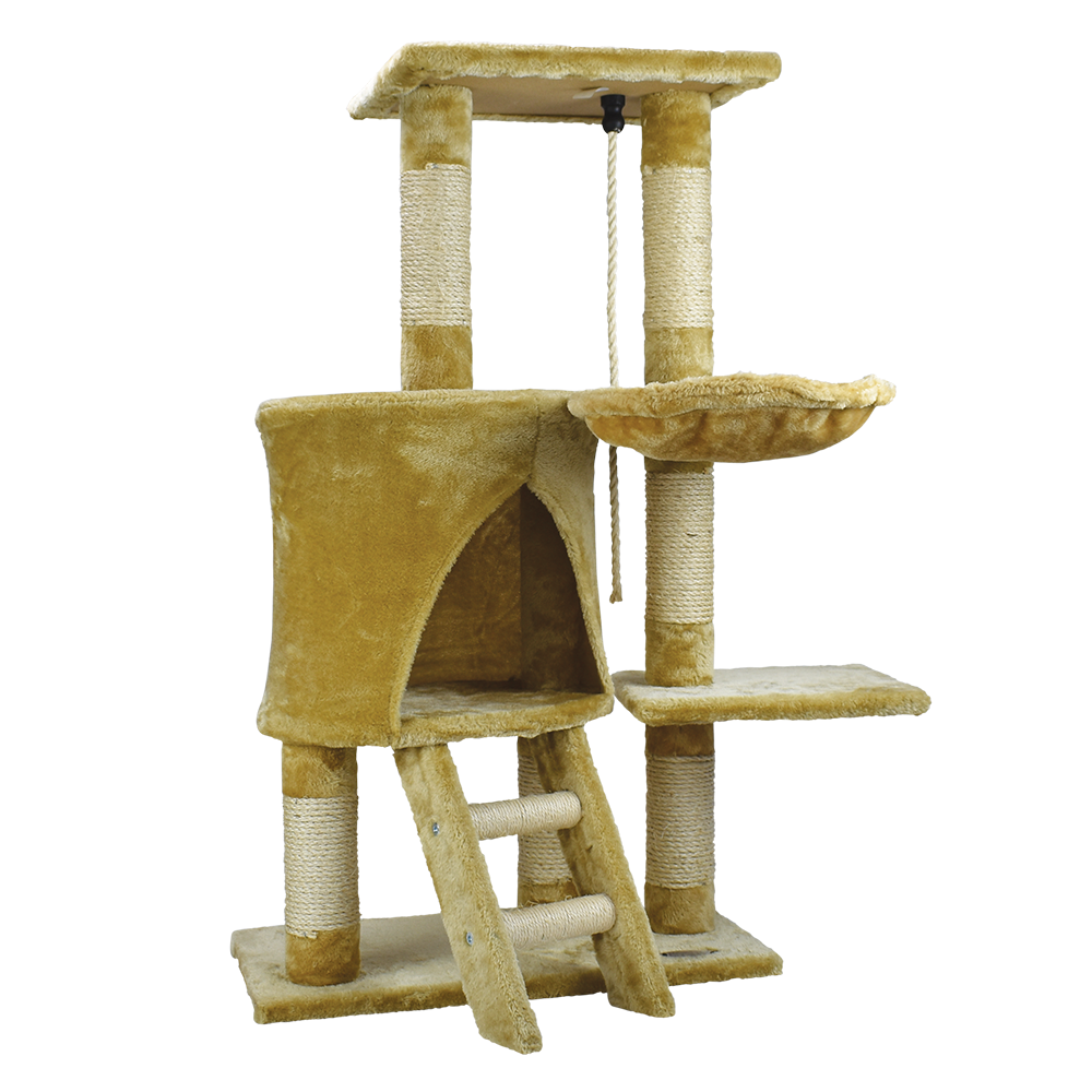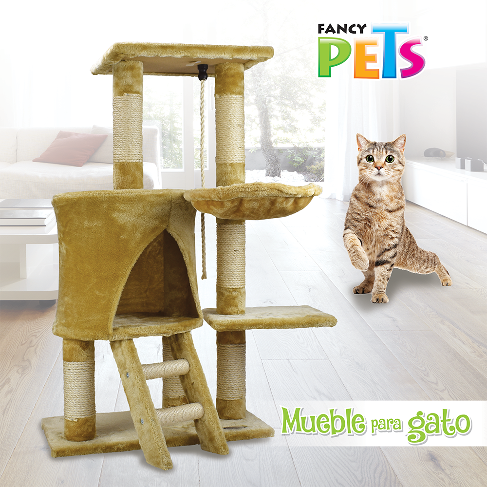 El gato podrá rascar y jugar con él tanto como quieran gracias a las plataformas, rascadores, hamaca y cuerda colgante.