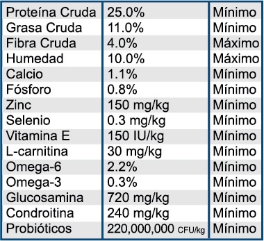 Contiene glucosamina y condroitina para fortalecer las articulaciones de su perro mayor, mientras que los niveles garantizados de vitamina E y selenio aportan una perfecta nutrición antioxidante.