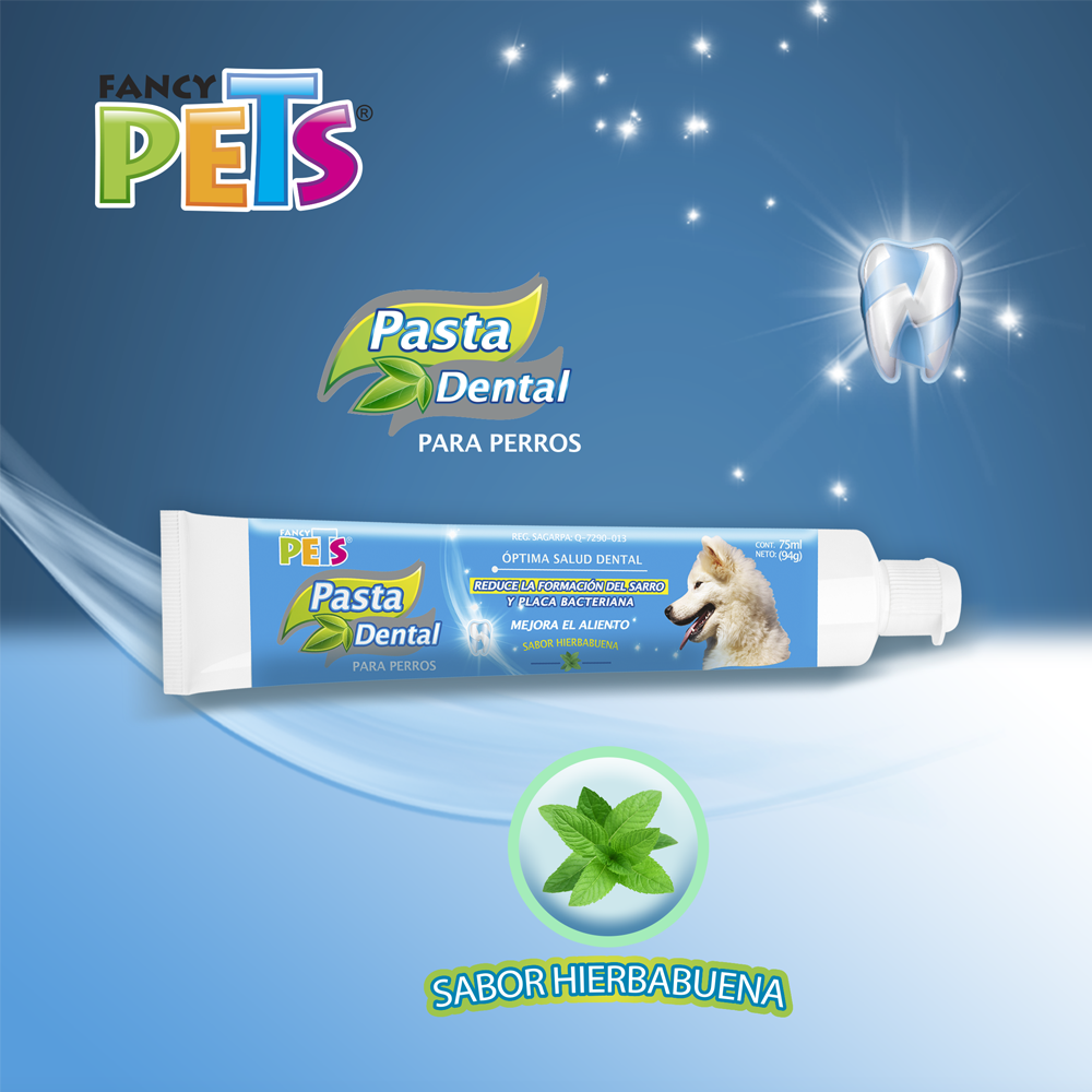 Sabor hierbabuena. Beneficios: Conoce la línea completa para el cuidado dental FANCYPETS. El cepillado dental reduce el riesgo de desarrollar enfermedades bucodentales, éstas pueden ocasionar serios problemas de salud en los perros. Establece una rutina diaria de cuidado dental puede extender la vida de nuestra mascota.