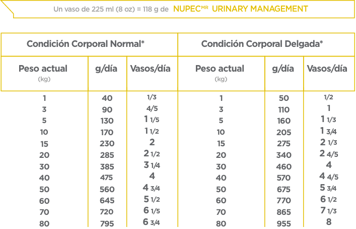 La fórmula de NUPEC URINARY MANAGEMENT ha sido diseñada para promover el equilibrio del pH urinario. Añadimos concentrado de arándano que promueve la acidificación urinaria que, en conjunto con los niveles controlados de minerales tienen un efecto preventivo en la formación de cristales en la orina. Contiene proteínas altamente digestibles para el mantenimiento de la condición corporal. Consulta a tu médico veterinario para determinar la dieta adecuada.