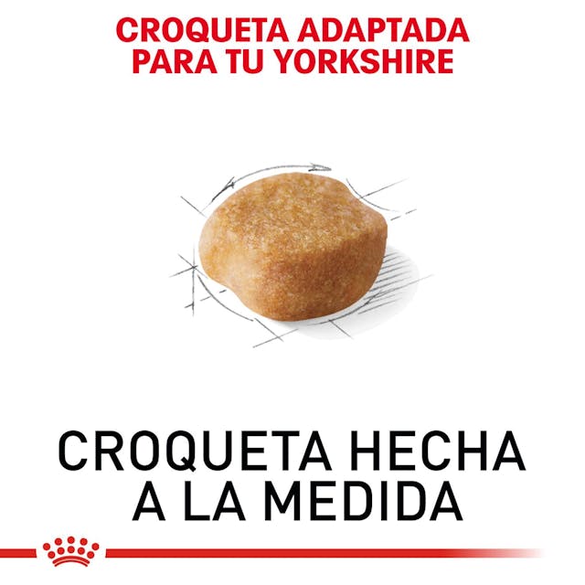 El Yorkshire Terrier tiene un hocico bastante corto y una mordida nivelada. La croqueta Yorkshire Terrier Adulto está diseñada con un tamaño, forma y textura óptimos para estimular la masticación en el Yorkshire Terrier. Ingredientes: Arroz cervecero, arroz integral, harina de pollo, grasa de pollo, gluten de trigo, harina de gluten de maíz, maíz, saborizante natural (cerdo, ave y leche de vaca), celulosa en polvo, pulpa de remolacha deshidratada, aceite de pescado, aceite vegetal, cloruro de potasio, carbonato de calcio, silicoaluminato sódico, fructooligosacáridos, tripolifosfato de sodio, vitaminas [acetato DL-alfa-tocoferol (fuente de vitamina E), suplemento de niacina, L-ascorbil-2-polifosfato (fuente de vitamina C), D-pantotenato de calcio, biotina, clorhidrato de piridoxina (vitamina B6), suplemento de riboflavina, mononitrato de tiamina (vitamina B1), acetato de vitamina A, ácido fólico, suplemento de vitamina B12, suplemento de vitamina D3], DL-metionina, cloruro de colina, hidrolizado de levadura de cerveza deshidratada, L-lisina, sal, L-tirosina, taurina, oligoelementos [proteinato de zinc, óxido de zinc, sulfato ferroso, proteinato de manganeso, óxido de manganeso, sulfato de cobre, yodato de calcio, selenito de sodio, proteinato de cobre], clorhidrato de glucosamina, GLA aceite de cártamo, extracto de cempasúchil (Tagetes erecta L.), óxido de magnesio, extracto de té verde, L-carnitina, sulfato de condroitina, extracto de romero, conservado con mezcla de tocoferoles y ácido cítrico.